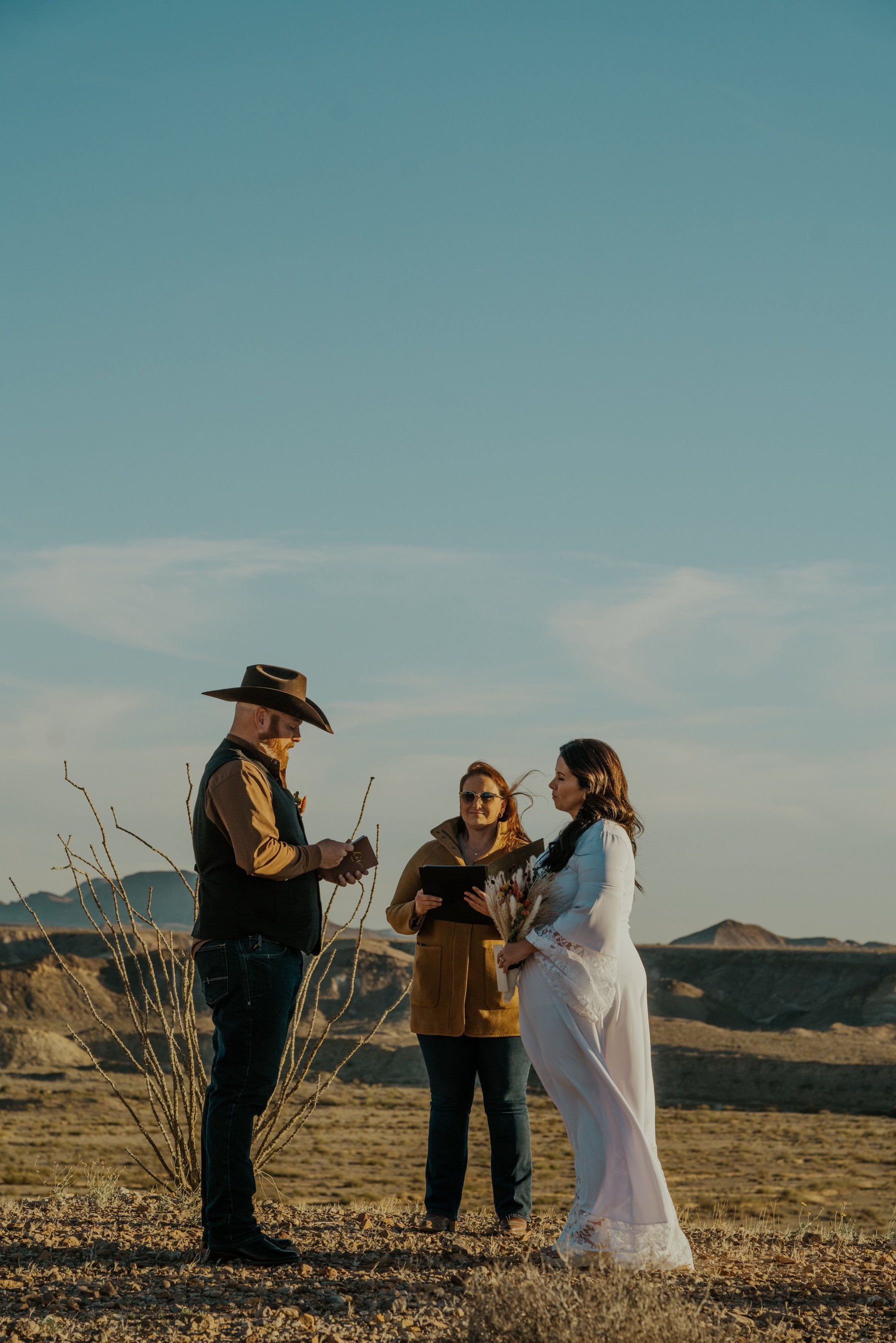 While I was raised in the Christian tradition, my spiritual journey has led me to find solace and connection in the natural world. The breathtaking vistas, the soothing sound of wind through the desert, and the brilliance of starlit skies have become my church. I deeply respect the significance of faith and spirituality in one's life, and I offer you the flexibility to choose whether you'd like a religious or non-religious ceremony.